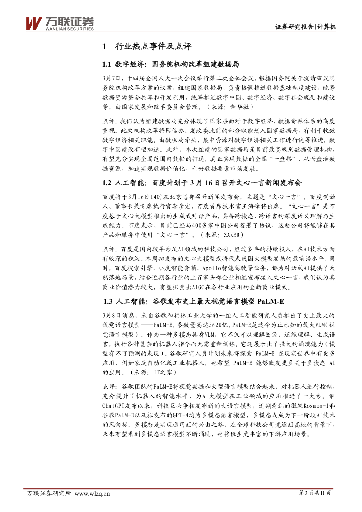 万联证券:计算机行业周观点:国务院机构改革组建数据局,百度文心一言发布在即.pdf