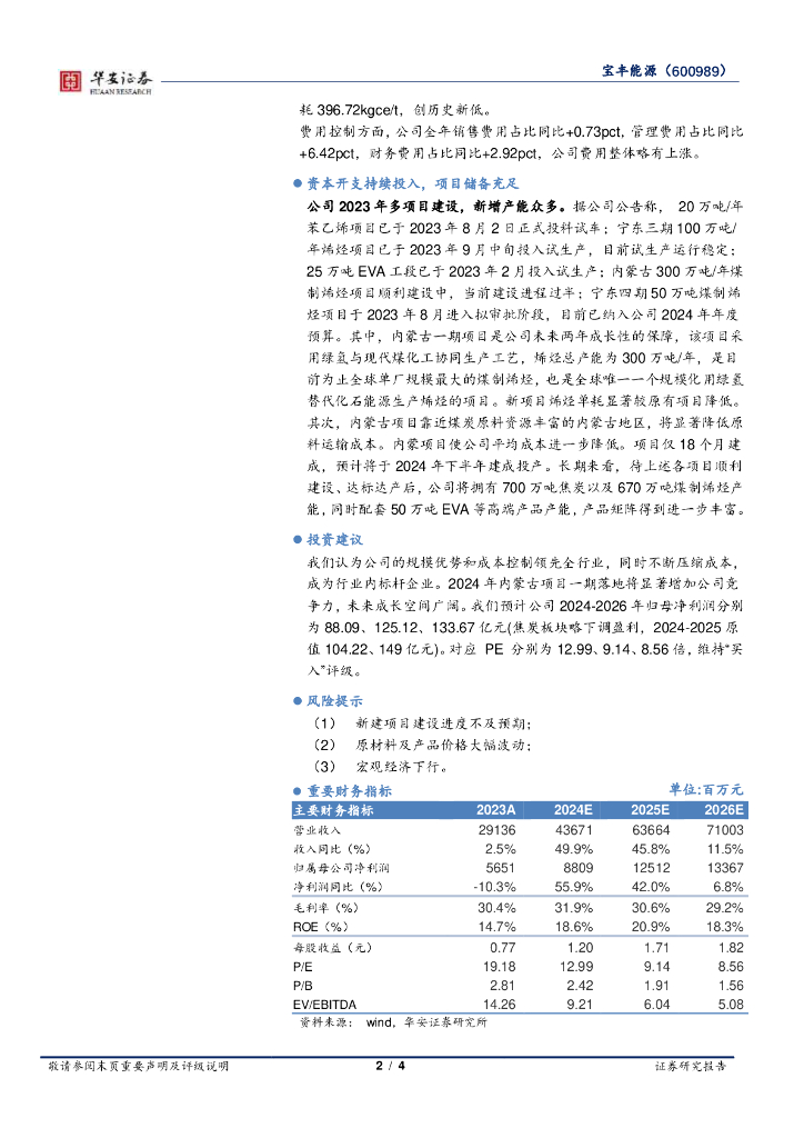 华安证券:宝丰能源(600989)-四季度盈利环比提升,精益管控持续降本.pdf