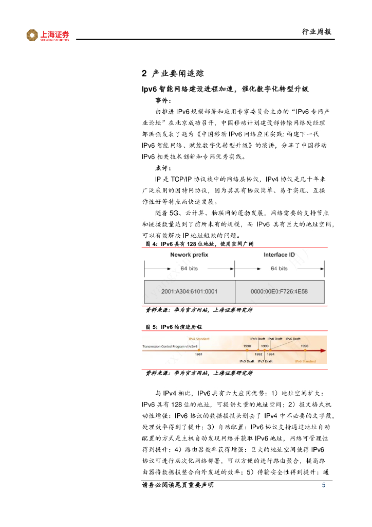 上海证券:通信行业周报:IPv6专网部署进程加速,应用侧布局展开.pdf