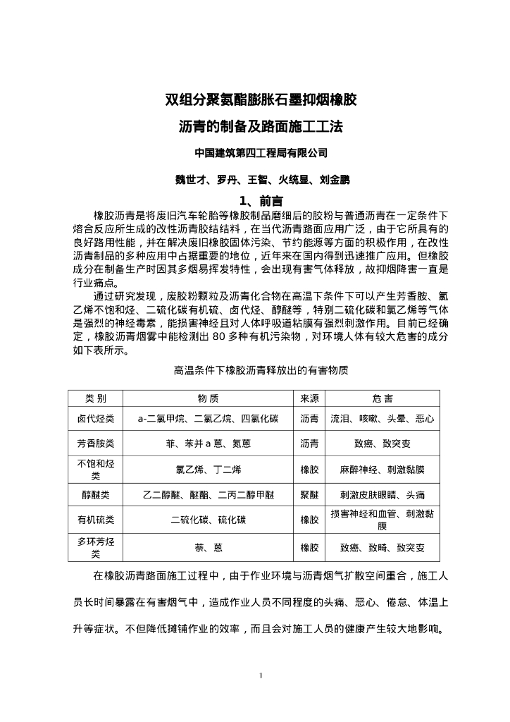 QHGF-2022036 双组分聚氨酯膨胀石墨抑烟橡胶沥青的制备及路面施工工法.doc