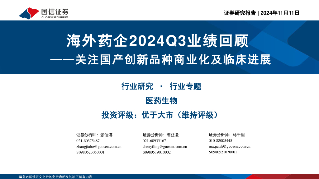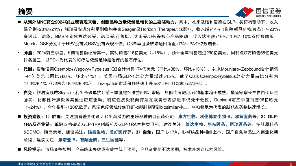 国信证券:海外药企2024Q3业绩回顾:关注国产创新品种商业化及临床进展.pdf