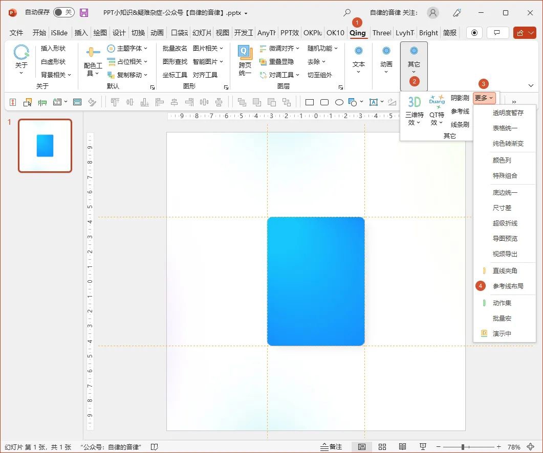最后,手动设置参考线相对来说比较费劲,可以借助 PPT 插件来添加、修改与删除。