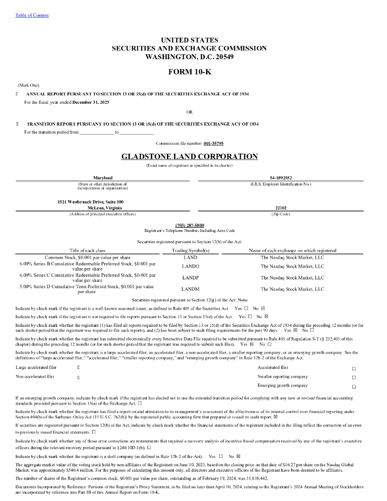 Gladstone Land Corp(LAND)2023财年年度报告(英文版).pdf