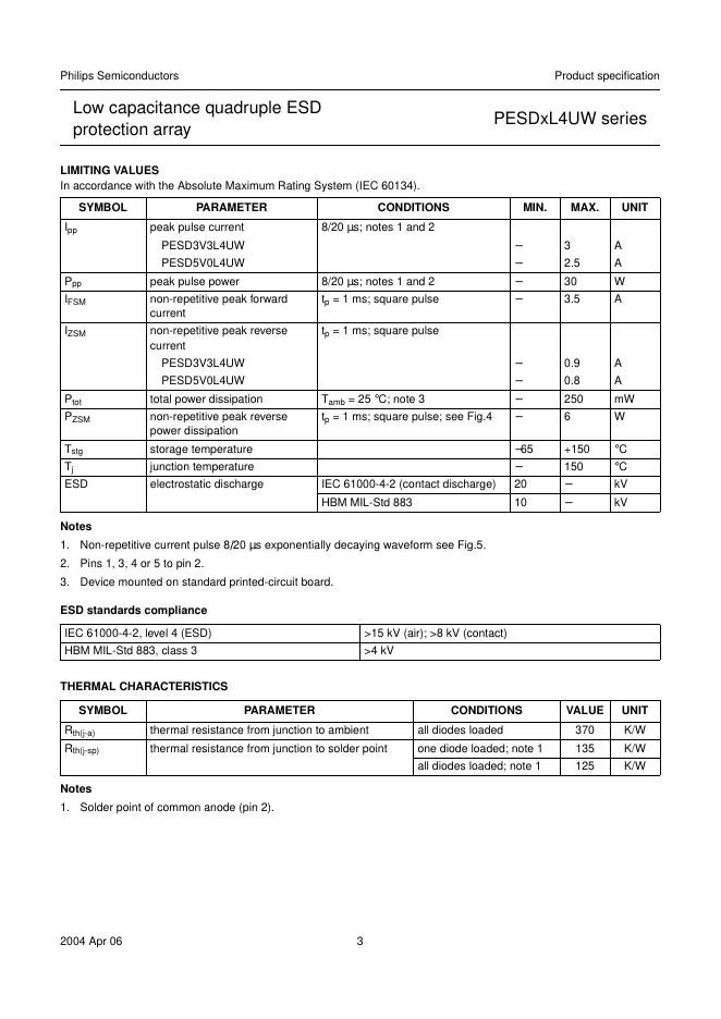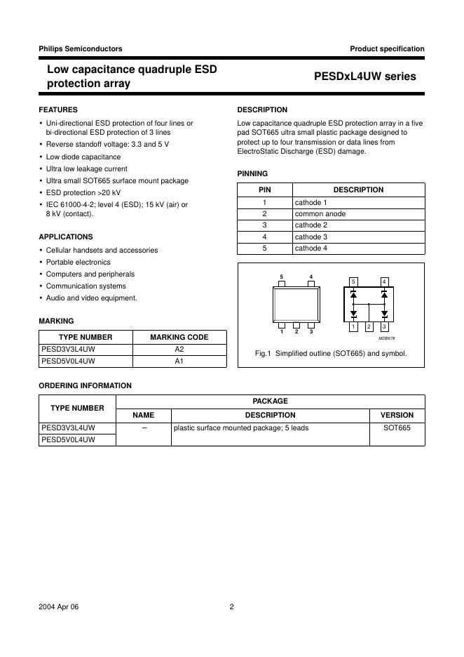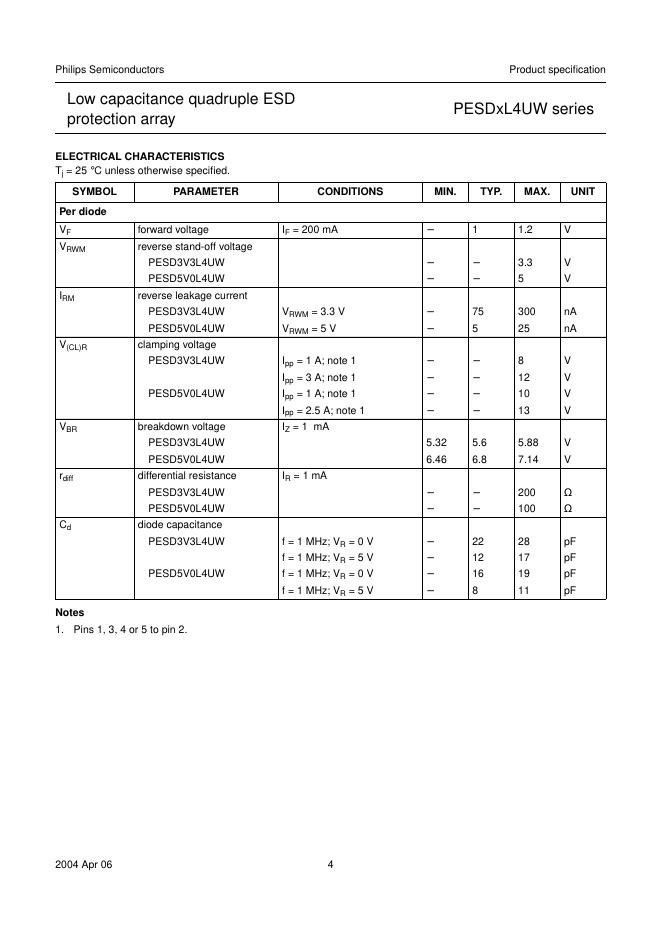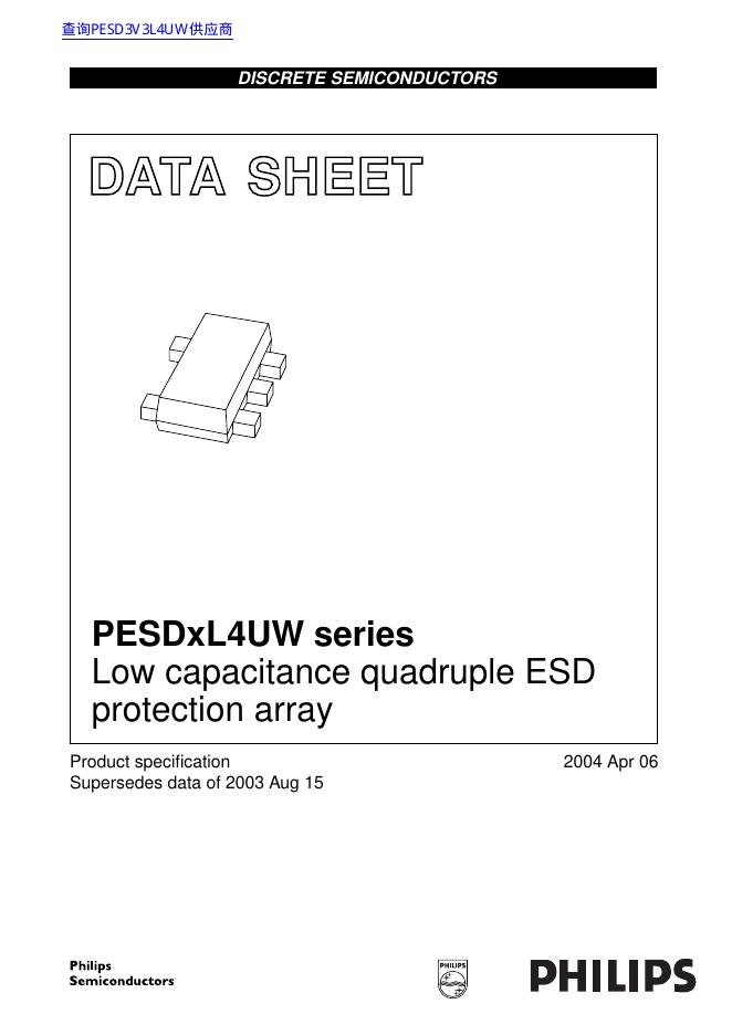 PHILIPS PESDxL4UW series Low capacitance quadruple ESD protection array 数据手册.pdf