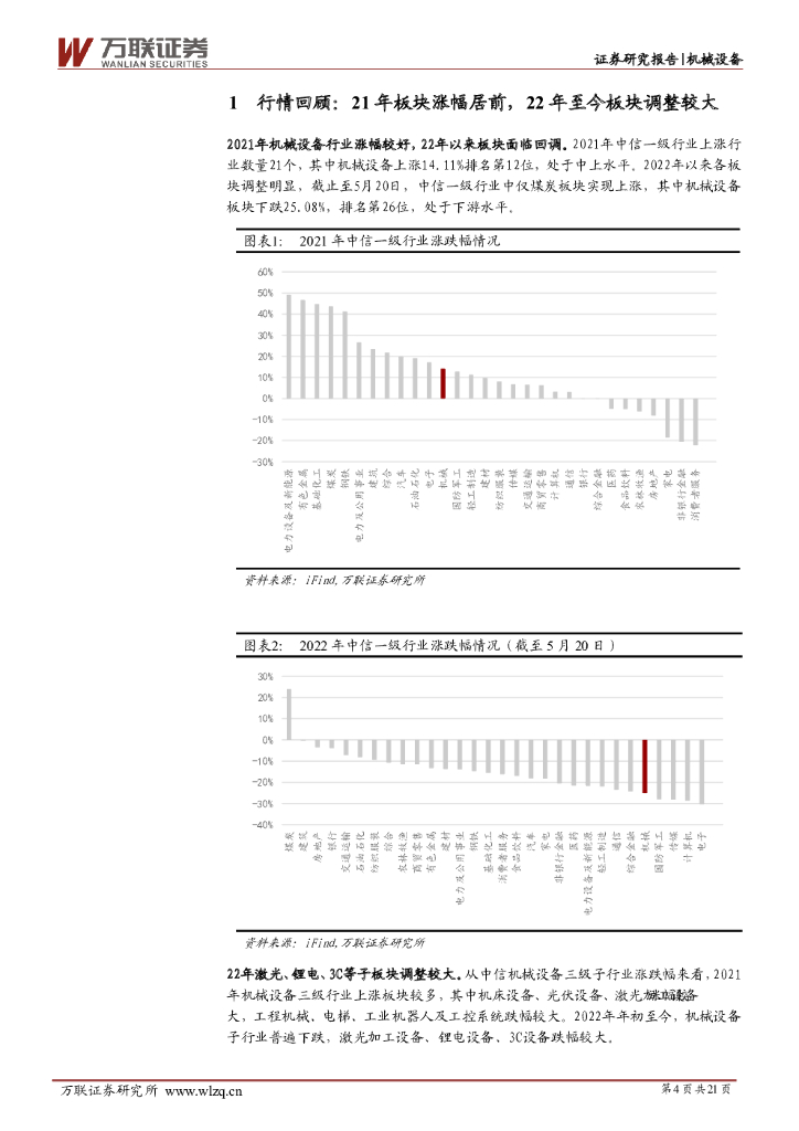 万联证券:机械设备2021年年报及2022年一季报综述:行业盈利能力承压,专用设备业绩亮眼.pdf