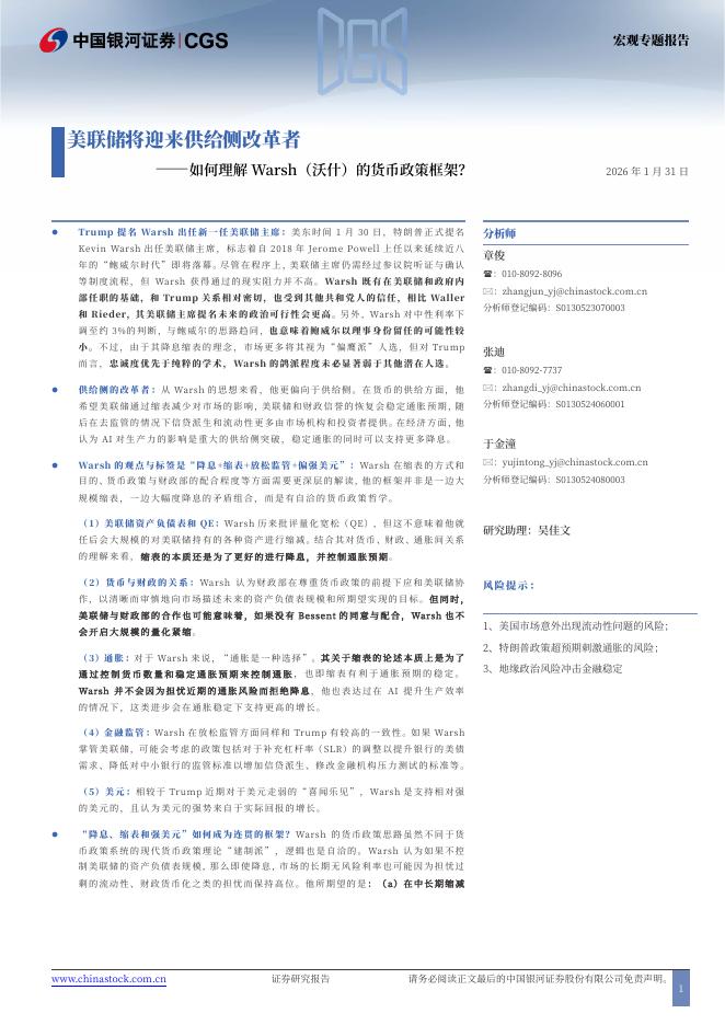 中国银河:美联储将迎来供给侧改革者——如何理解Warsh(沃什)的货币政策框架?-260131.pdf