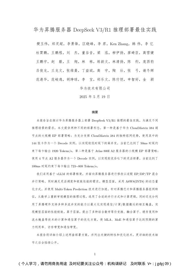 华为:2025年华为昇腾服务器DeepSeek V3R1推理部署最佳实践技术报告.pdf