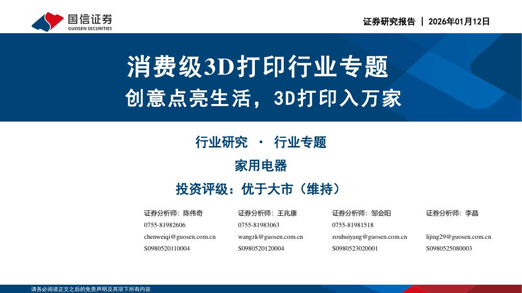国信证券:消费级3D打印行业专题:创意点亮生活,3D打印入万家.pdf