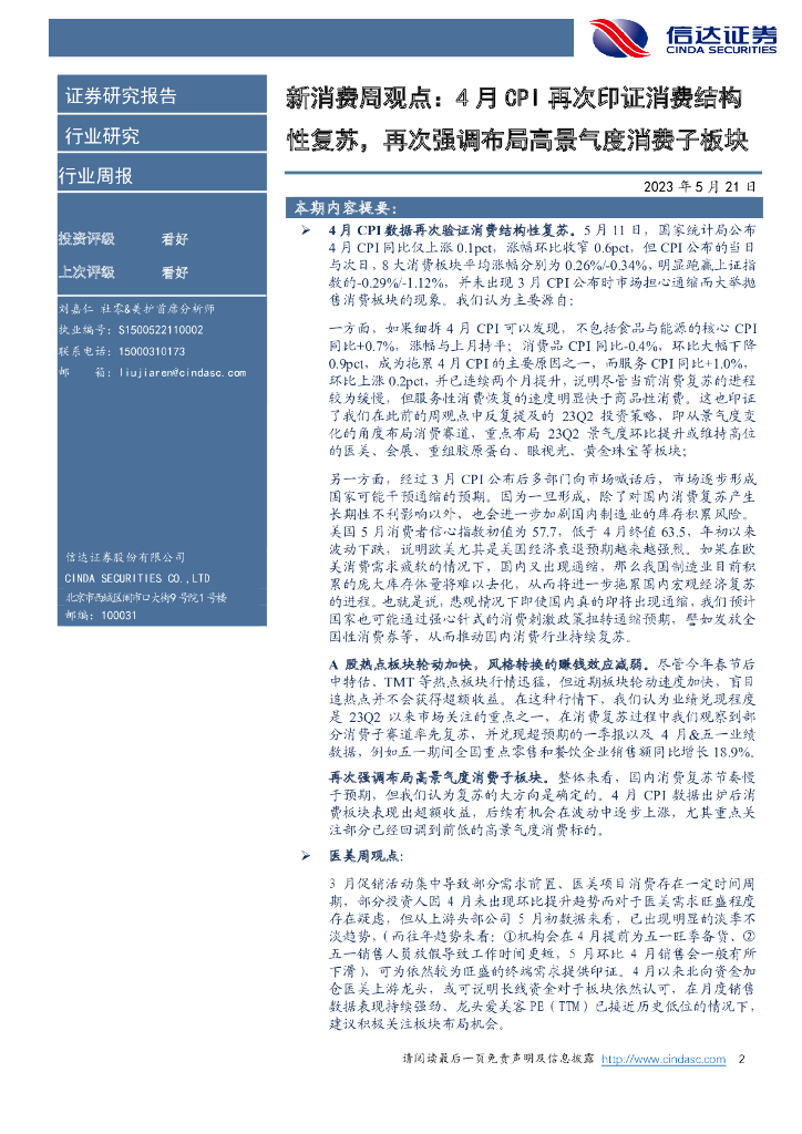 信达证券:新消费周观点:4月CPI再次印证消费结构性复苏,再次强调布局高景气度消费子板块.pdf