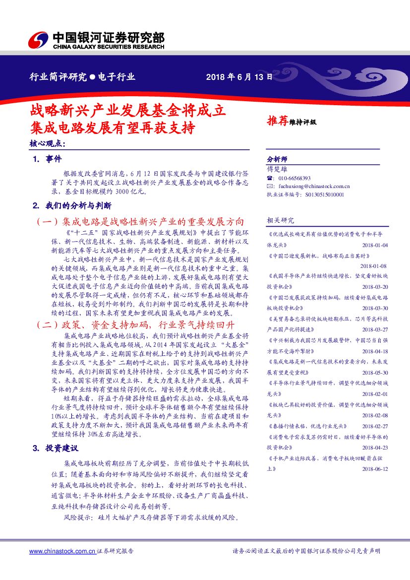 中国银河:电子行业简评研究:战略新兴产业发展基金将成立 集成电路发展有望再获支持.pdf