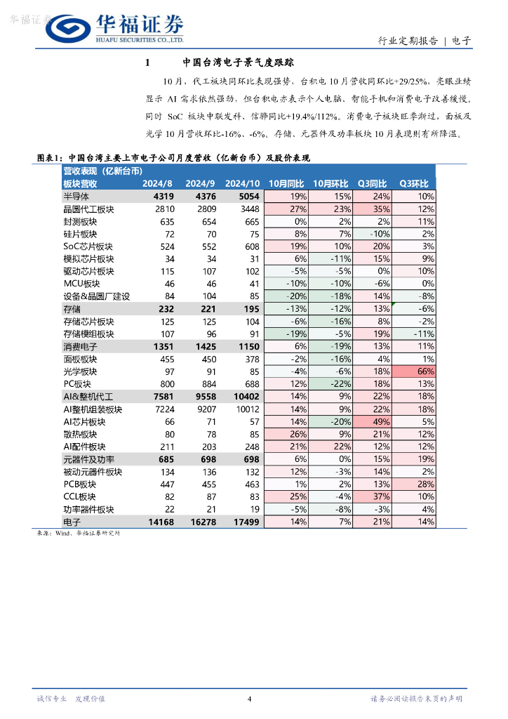 华福证券:电子月报(台股)2024-10:10月业绩分化,先进制程与SoC领跑.pdf