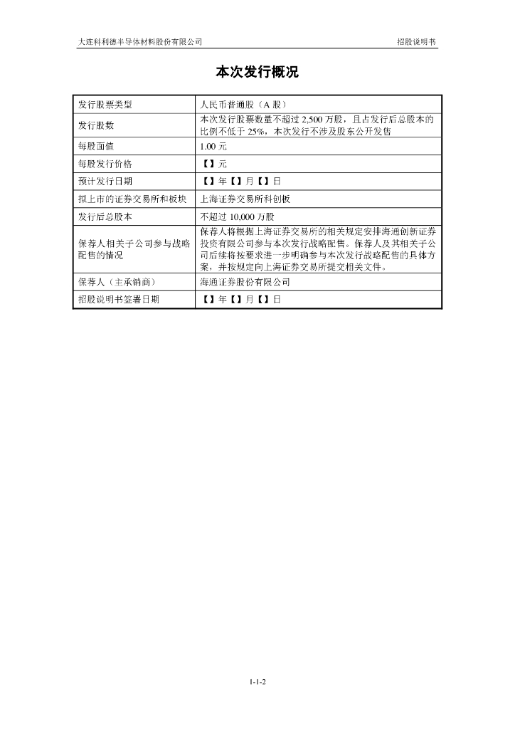 大连科利德半导体材料股份有限公司上交所科创板IPO上市招股说明书.pdf