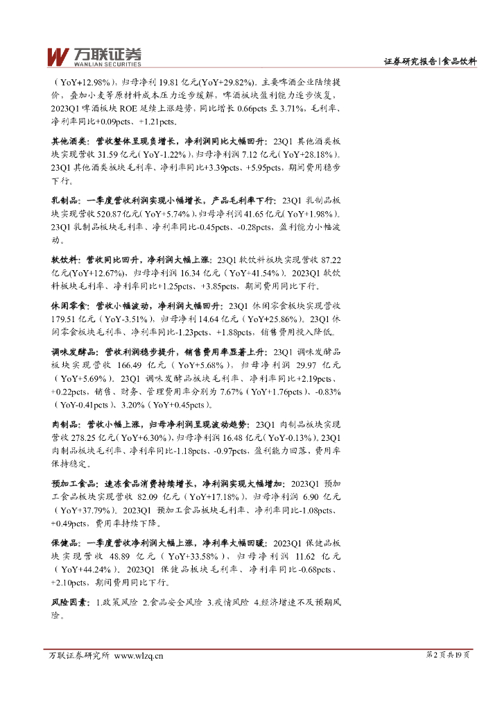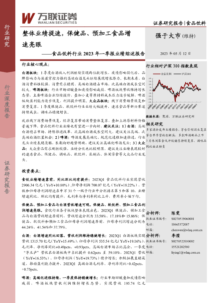 万联证券:食品饮料行业2023年一季报业绩综述报告:整体业绩提速,保健品、预加工食品增速亮眼.pdf