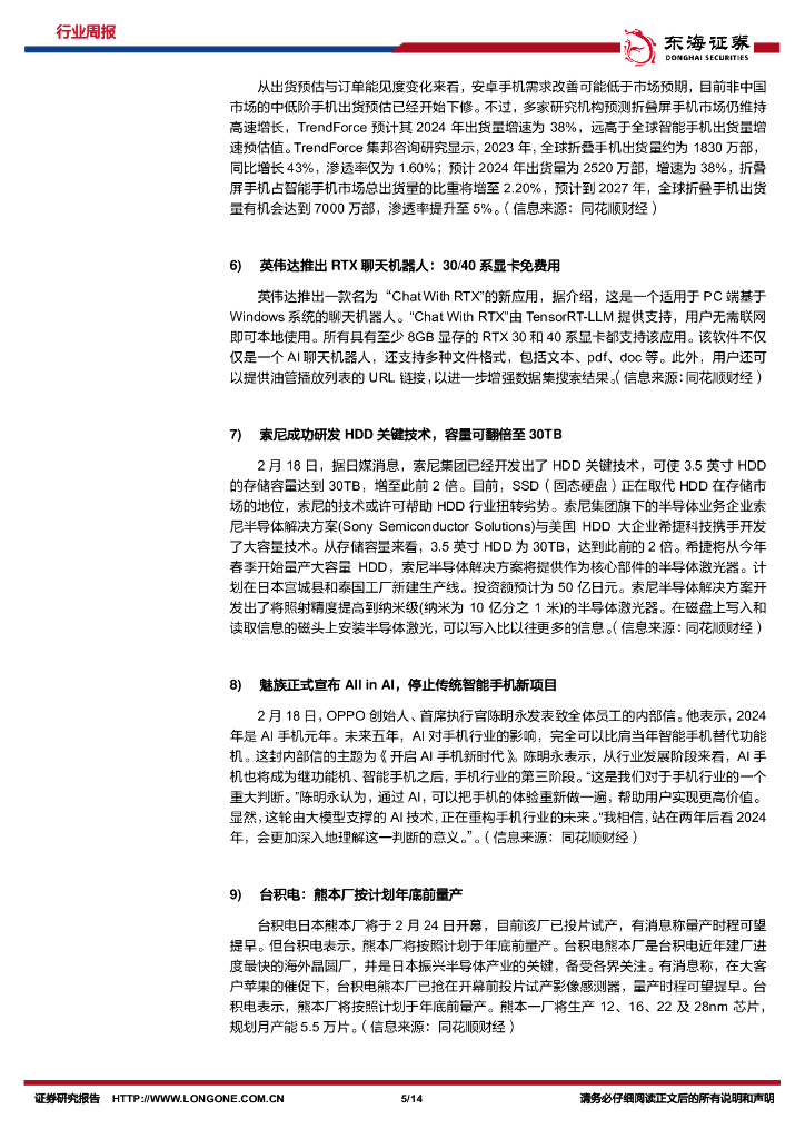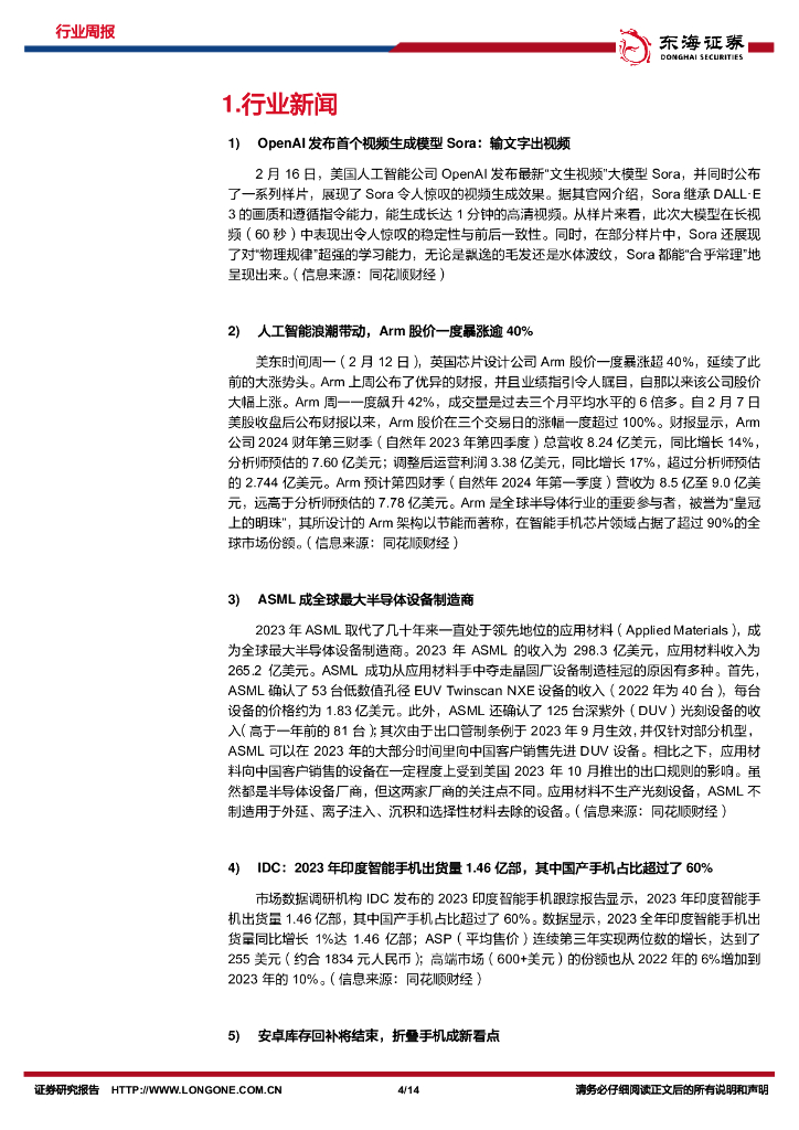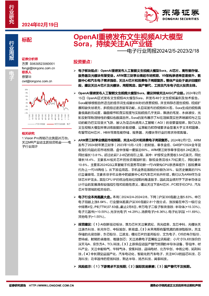 东海证券:电子行业周报2024/2/5-2023/2/18:OpenAI重磅发布文生视频AI大模型Sora,持续关注AI产业链.pdf