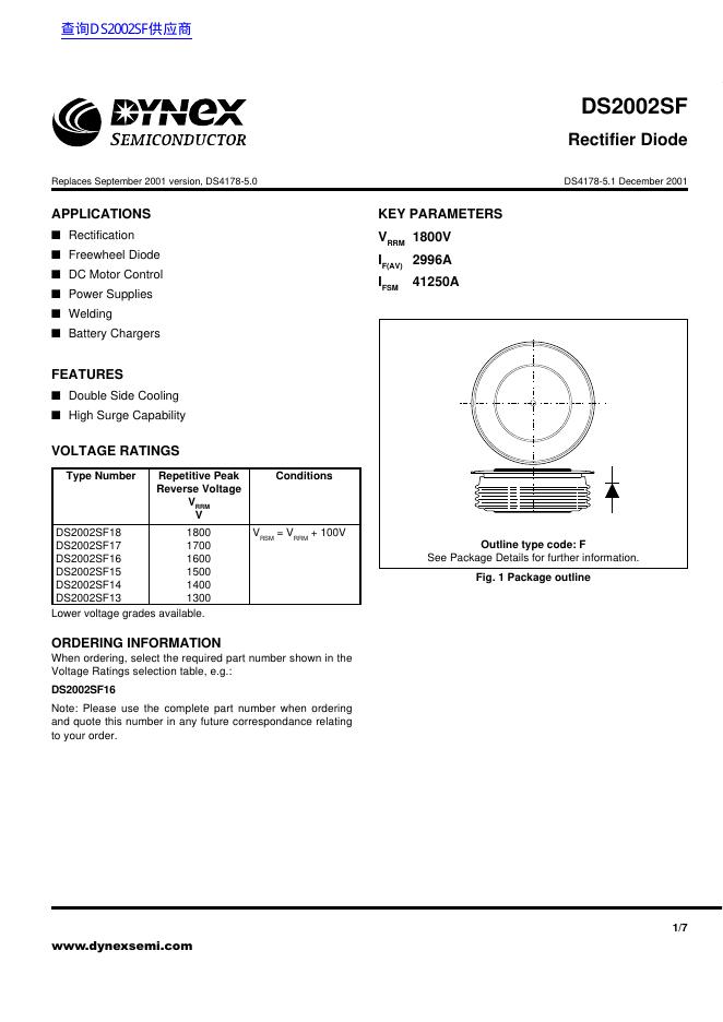 DYNEX SEMICONDUCTOR DS2002SF Rectifier Diode 数据手册.pdf