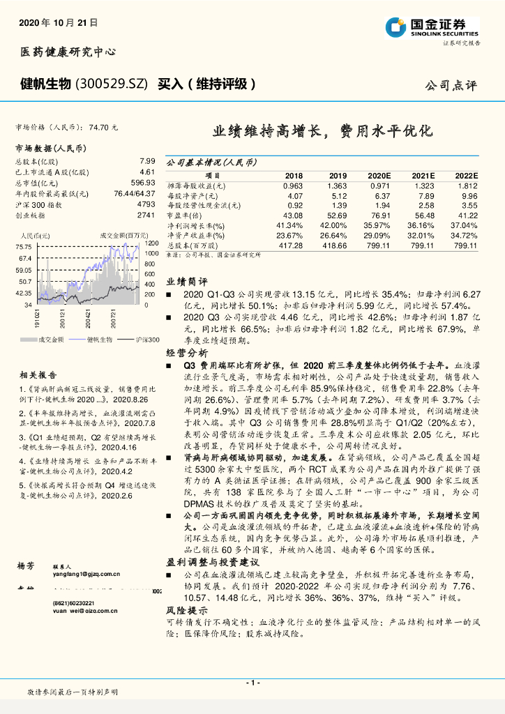 国金证券:健帆生物(300529)-业绩维持高增长,费用水平优化.pdf