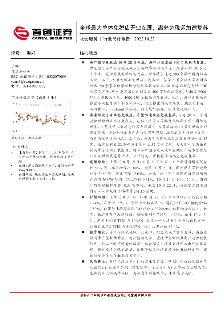 首创证券:社会服务行业简评报告:全球最大单体免税店开业在即,离岛免税迎加速复苏.pdf