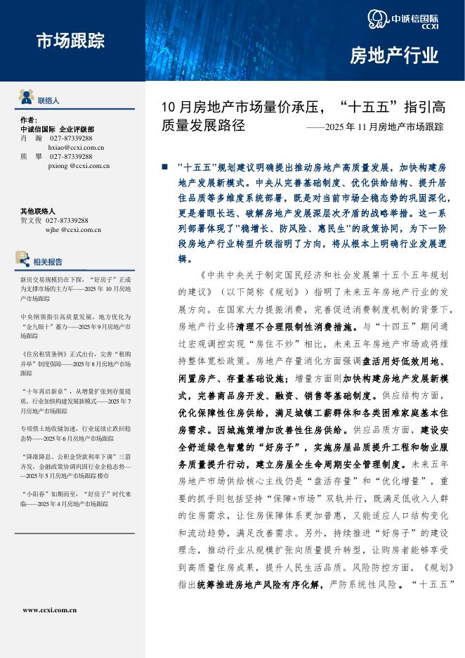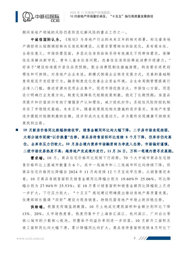 中诚信国际:2025年11月房地产市场跟踪:10月房地产市场量价承压,“十五五”指引高质量发展路径.pdf