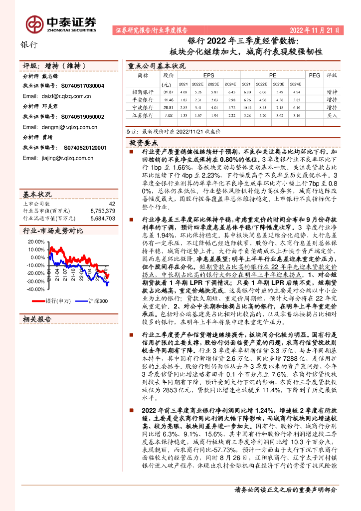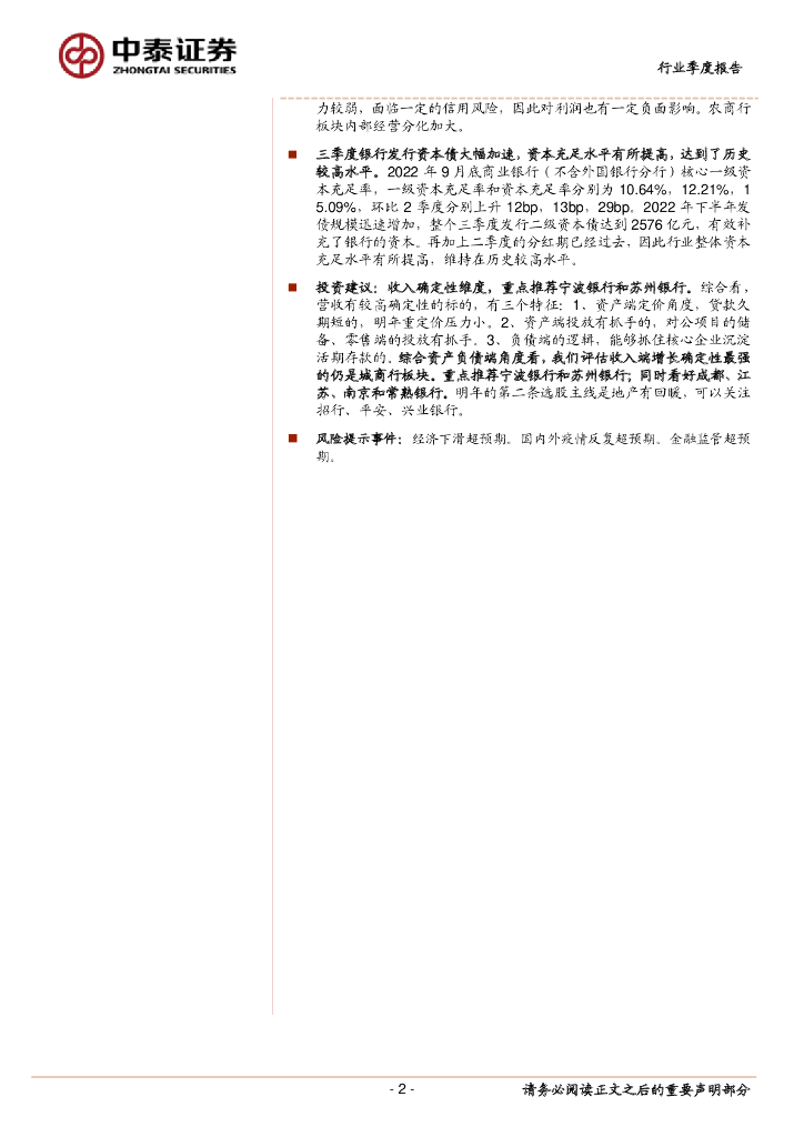 中泰证券:银行2022年三季度经营数据:板块分化继续加大,城商行表现较强韧性.pdf