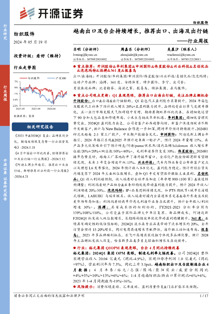 开源证券:纺织服饰行业周报:越南出口及台企持续增长,推荐出口、出海及出行链.pdf