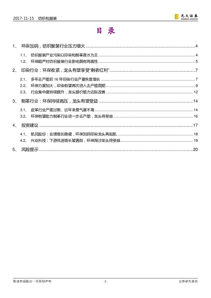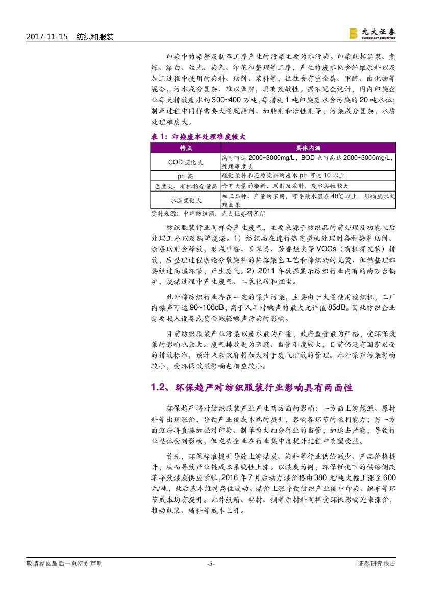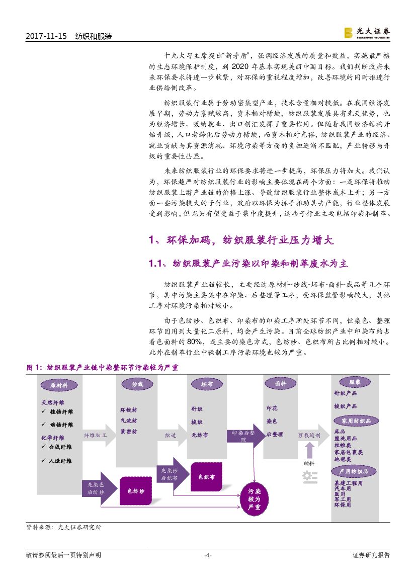 光大证券:纺织和服装行业深度:“美丽中国”系列报告之纺织服装篇-环保压力下,印染、皮革行业进入去产能周期.pdf