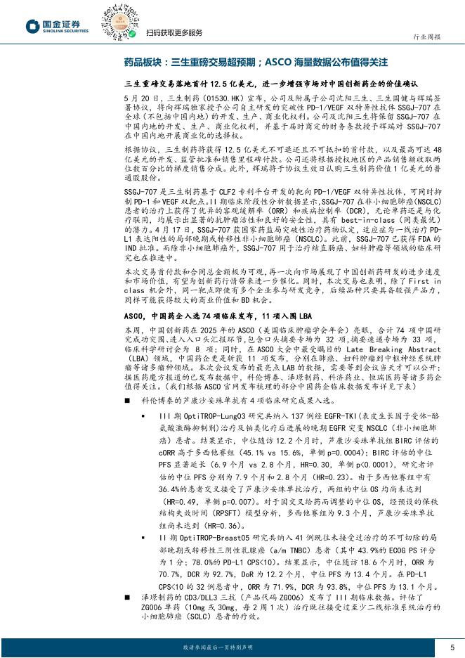 国金证券:医药健康行业研究:三生制药重磅交易增强创新药信心,ASCO临床数据带来丰富催化.pdf