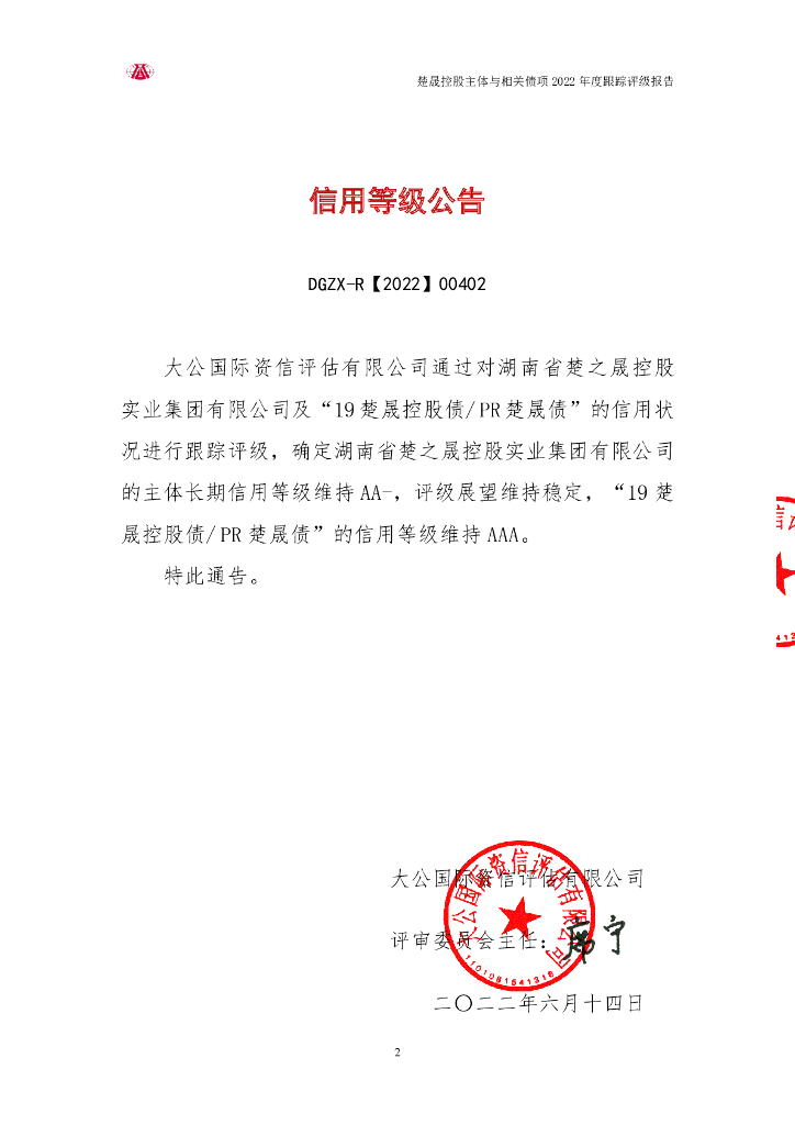 大公:湖南省楚之晟控股实业集团有限公司主体与相关债项2022年度跟踪评级报告.pdf