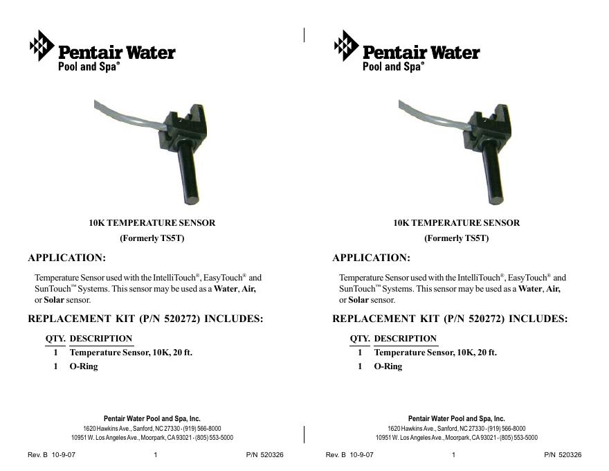 Pentair Water 10K Temperature Sensor (formerly TS5T) Installation Guide for LX220 Family.pdf