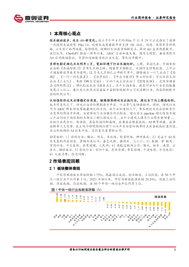 首创证券:传媒行业简评报告:贺岁档排片逐渐明朗,关注AIGC新变化.pdf