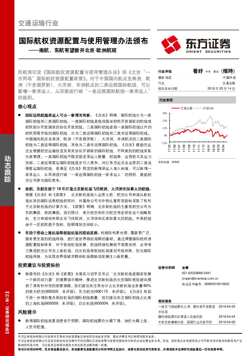东方证券:南航、东航有望新开北京-欧洲航班:国际航权资源配置与使用管理办法颁布.pdf