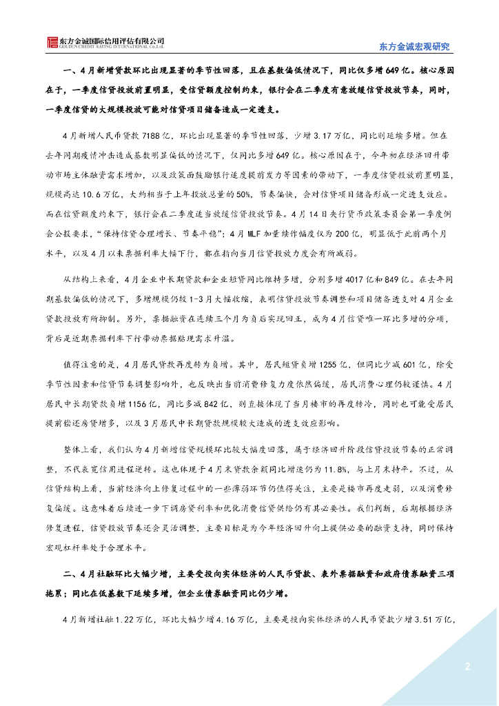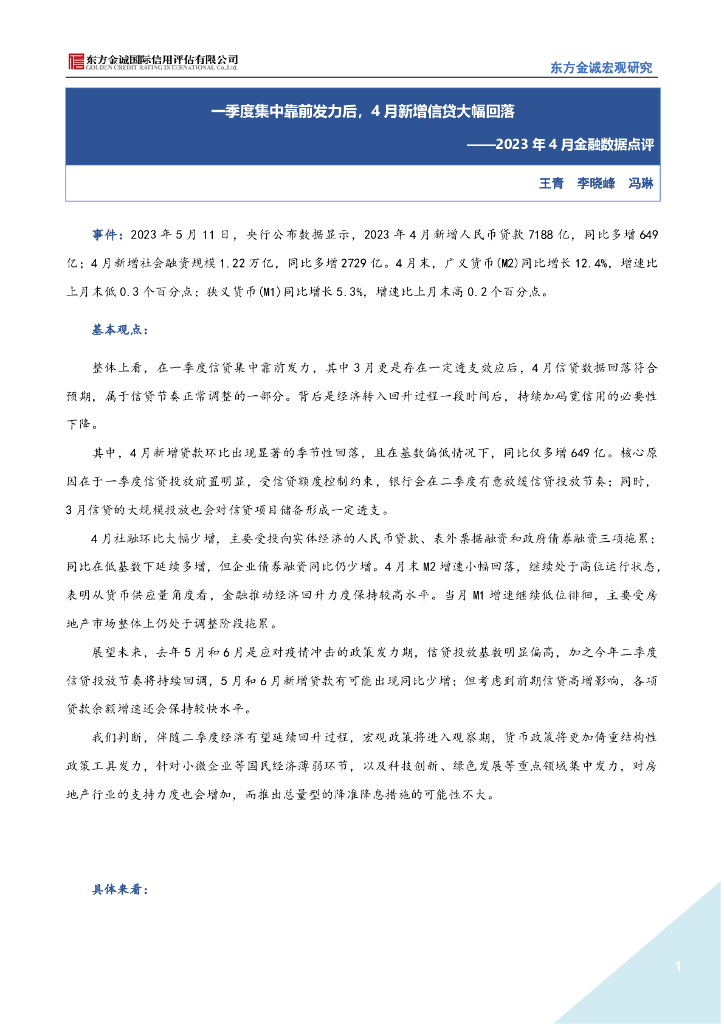 东方金诚:一季度集中靠前发力后,4月新增信贷大幅回落-2023年4月金融数据点评.pdf