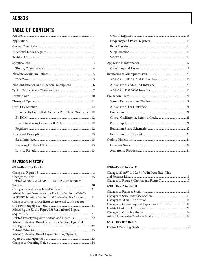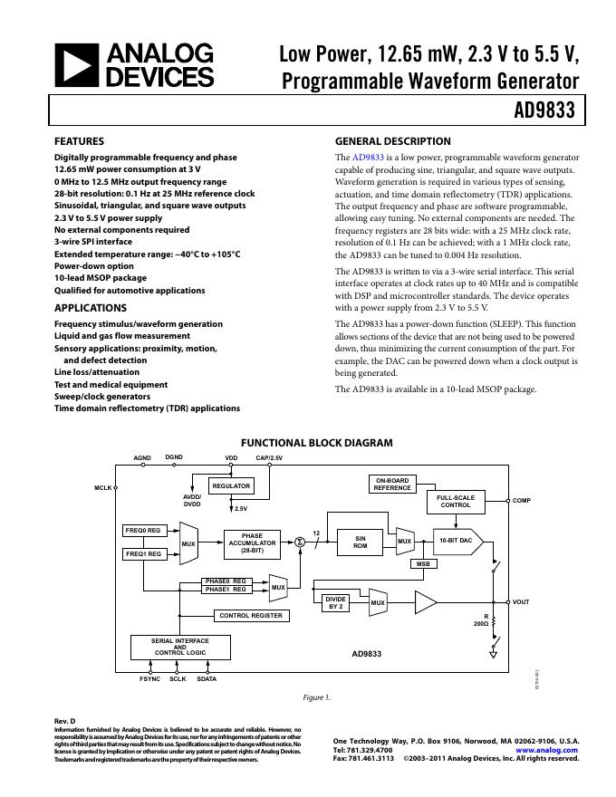 ANALOG DEVICES AD9833 英文产品 数据手册 Rev D.pdf