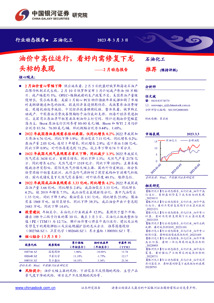 中国银河:石油化工2月动态报告:油价中高位运行,看好内需修复下龙头标的表现.pdf