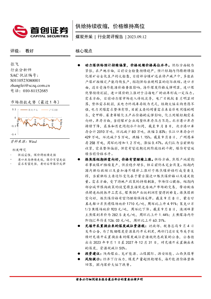 首创证券:煤炭开采:供给持续收缩,价格维持高位.pdf