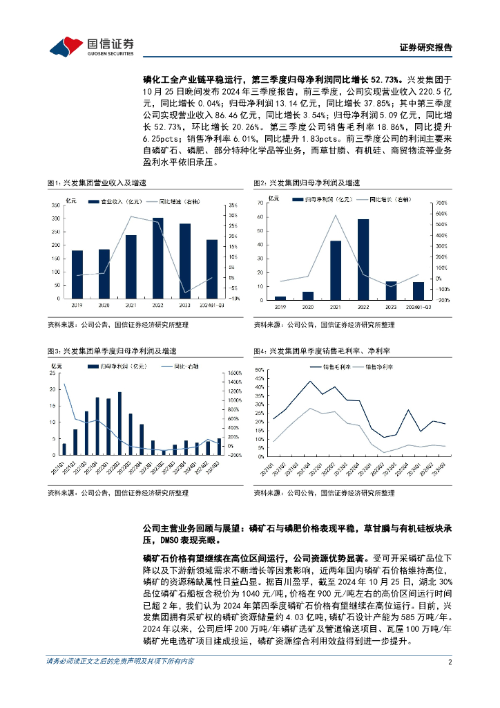 国信证券:兴发集团(600141)-2024年三季报点评:三季度归母净利润同环比增长,兴福电子IPO首发上会获通过.pdf