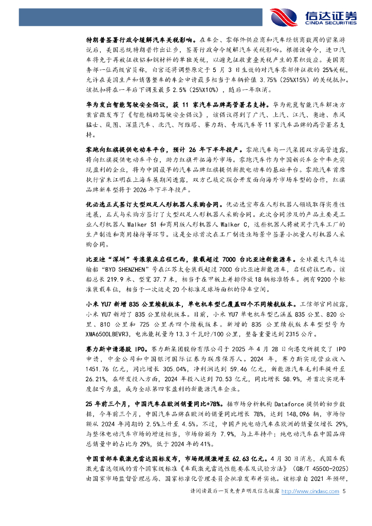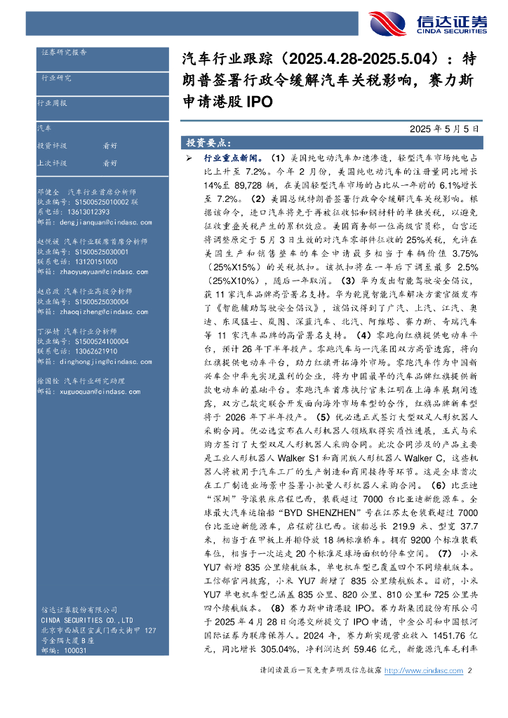 信达证券:汽车行业跟踪:特朗普签署行政令缓解汽车关税影响,赛力斯申请港股IPO.pdf