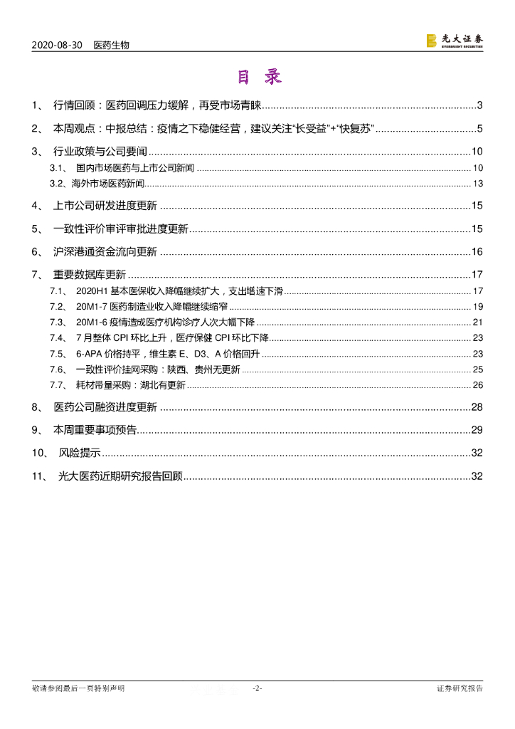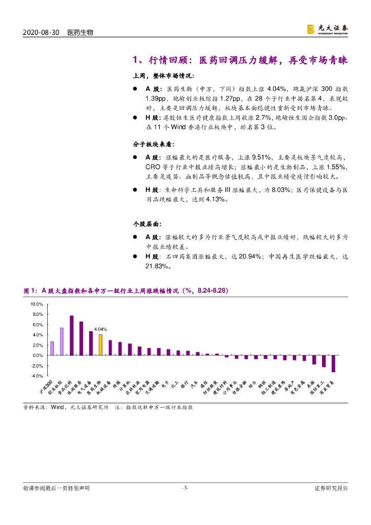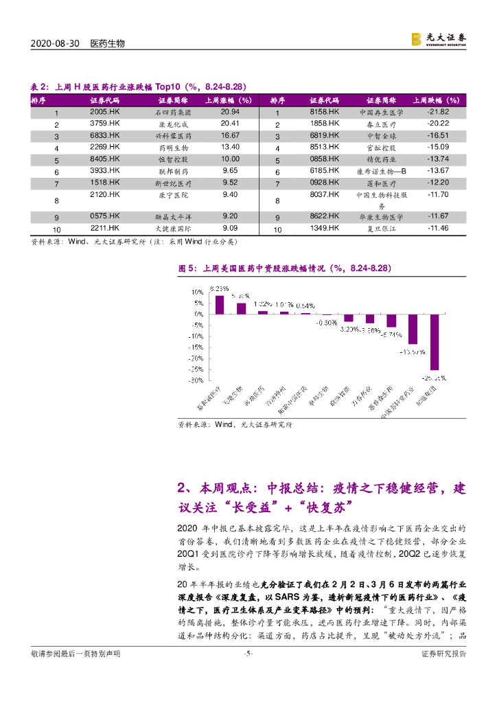 光大证券:医药生物行业跨市场周报:中报总结:疫情之下稳健经营,建议关注“ 长受益”+“ 快复苏”.pdf