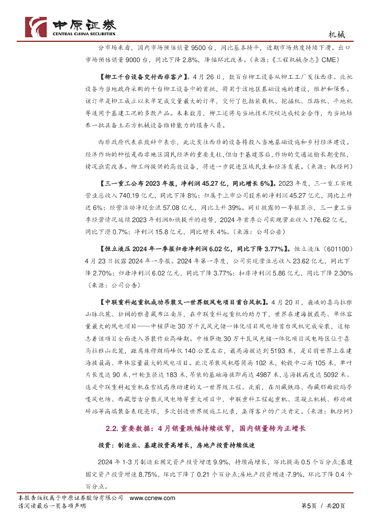 中原证券:机械行业月报:设备更新政策持续下沉发力,出口产业链景气持续.pdf