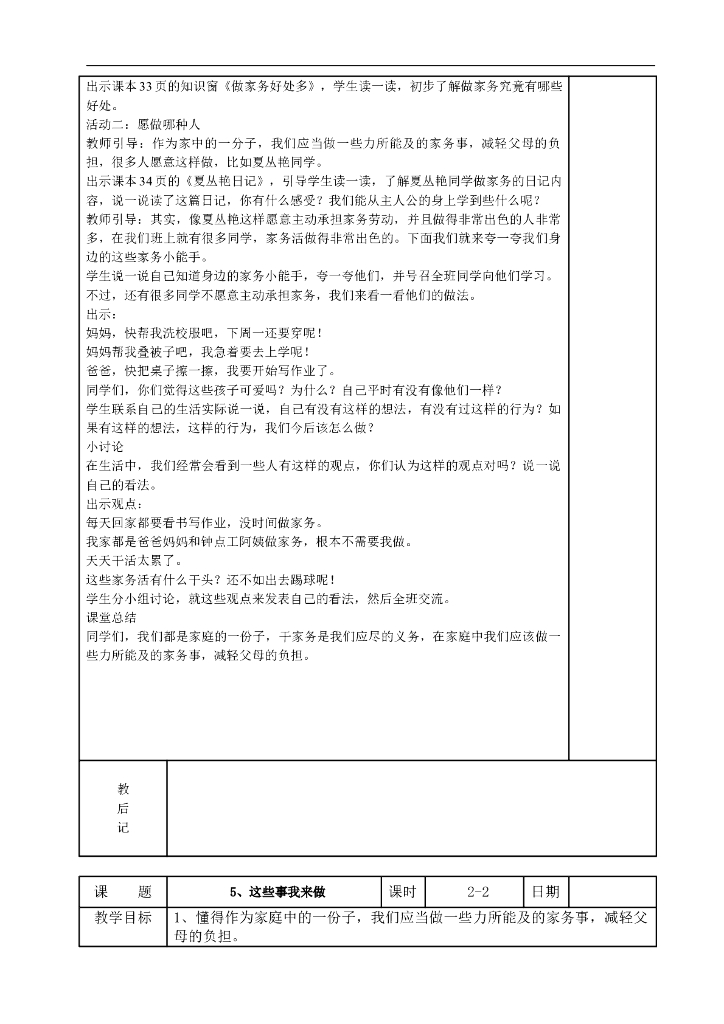 2021四年级上册 人教版小学道德与法治1.5 这些事我来做 (表格式).doc