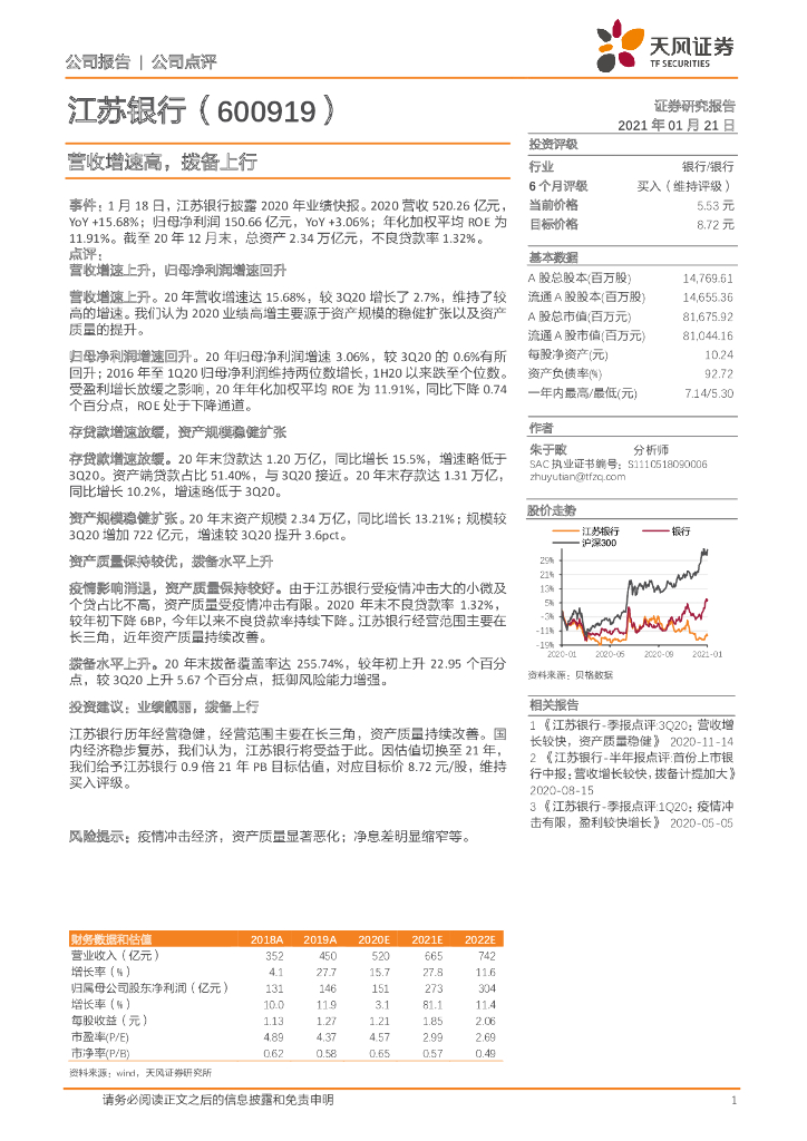 天风证券:江苏银行(600919)-营收增速高,拨备上行.pdf