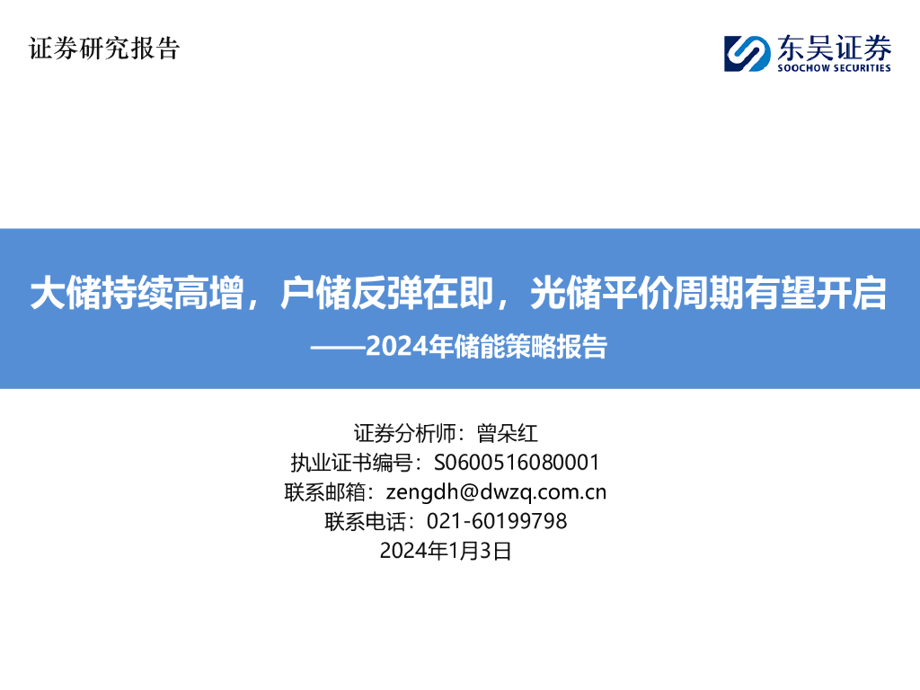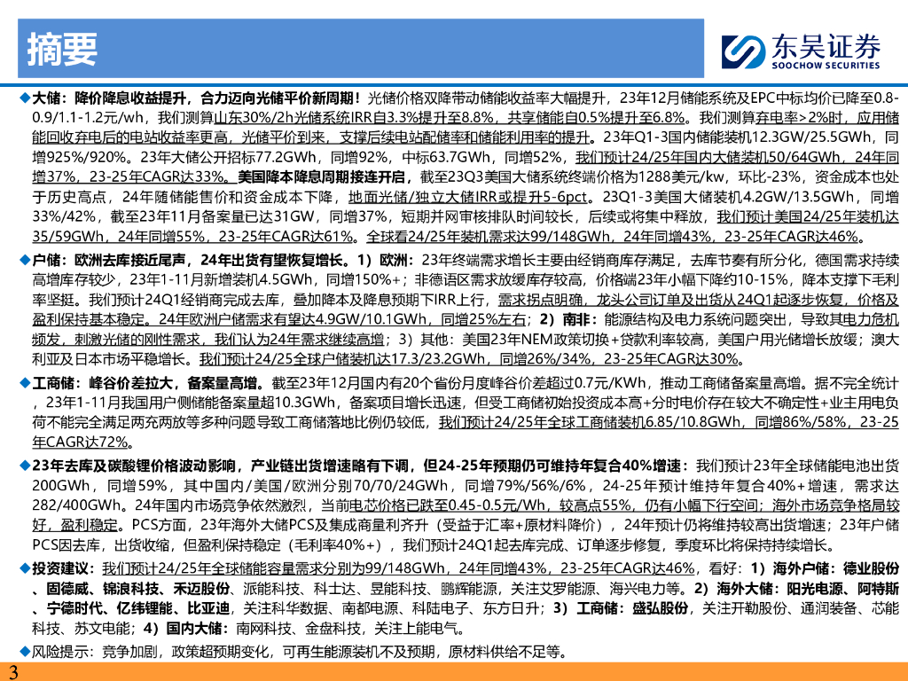 东吴证券:2024年储能策略报告:大储持续高增,户储反弹在即,光储平价周期有望开启.pdf