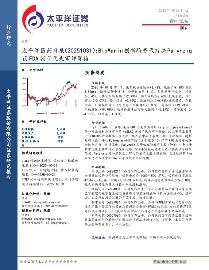 太平洋证券:医药日报:BioMarin创新酶替代疗法Palynziq获FDA授予优先审评资格.pdf