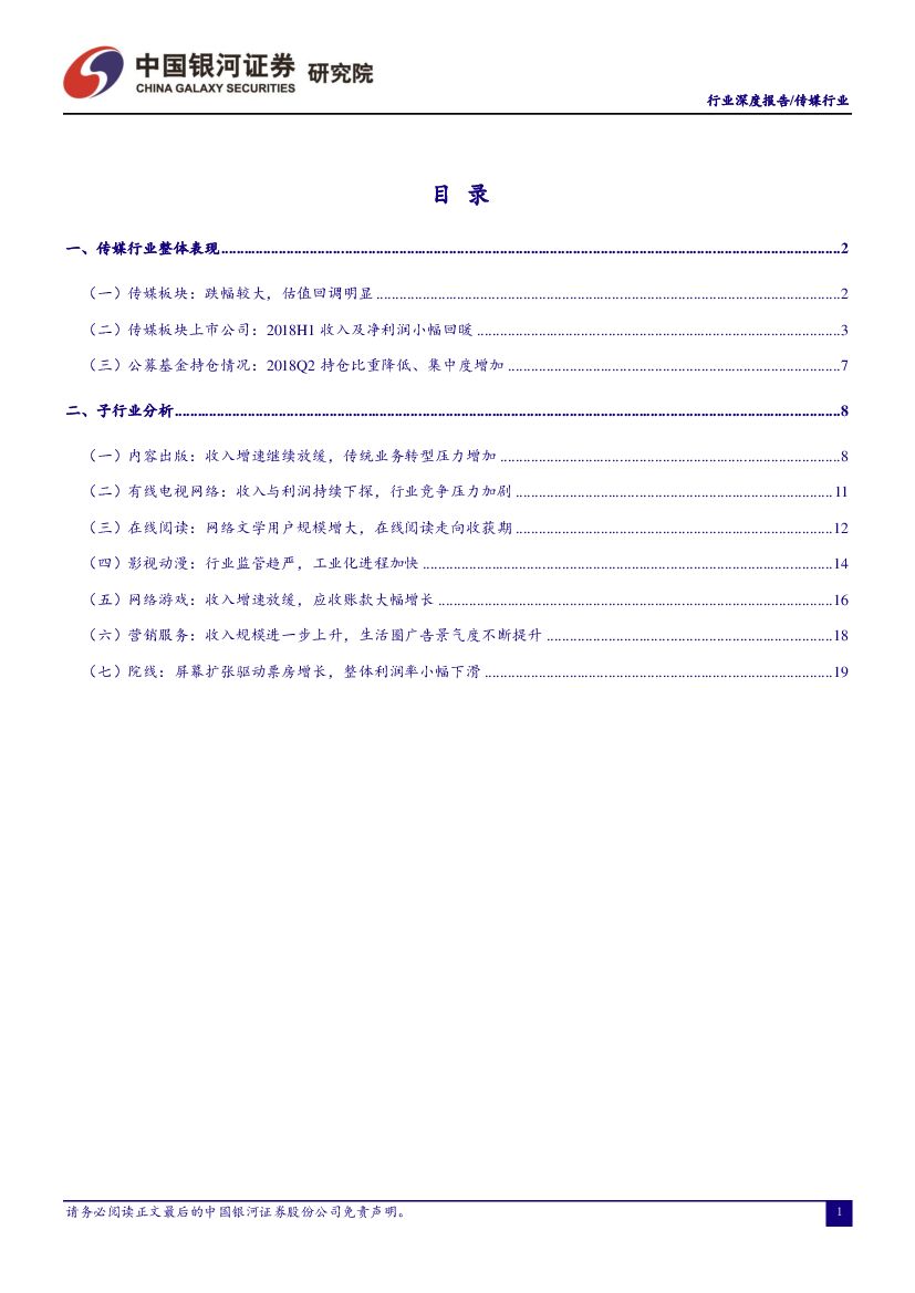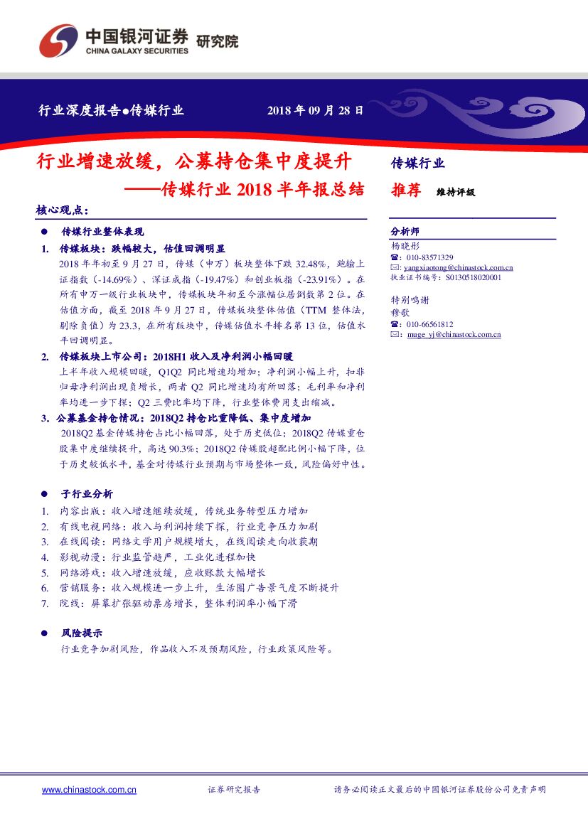 中国银河:传媒行业2018半年报总结:行业增速放缓,公募持仓集中度提升.pdf