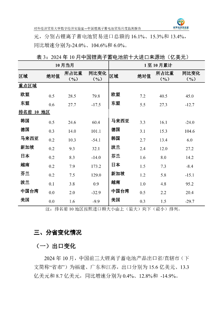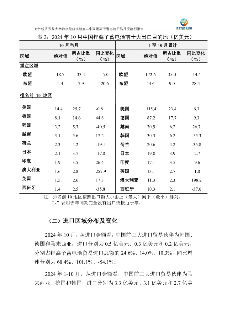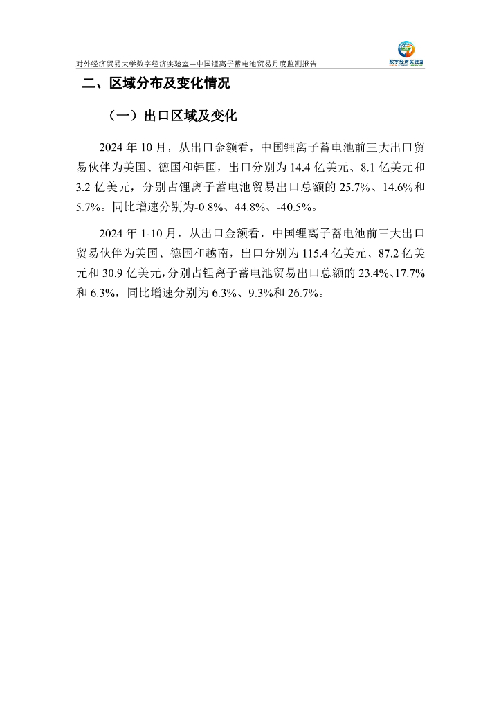 对外经济贸易大学:中国锂离子蓄电池贸易月度监测报告(2024年1-10月).pdf