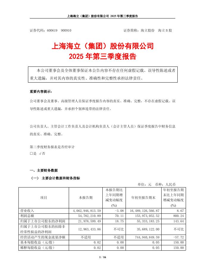 600619-海立股份:海立股份2025年第三季度报告.pdf