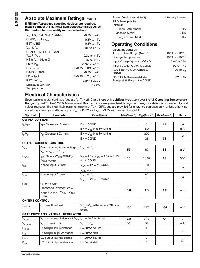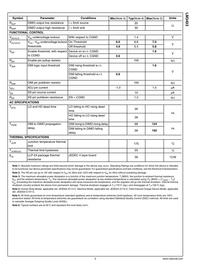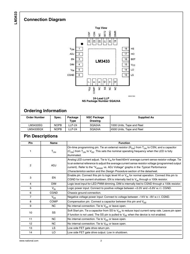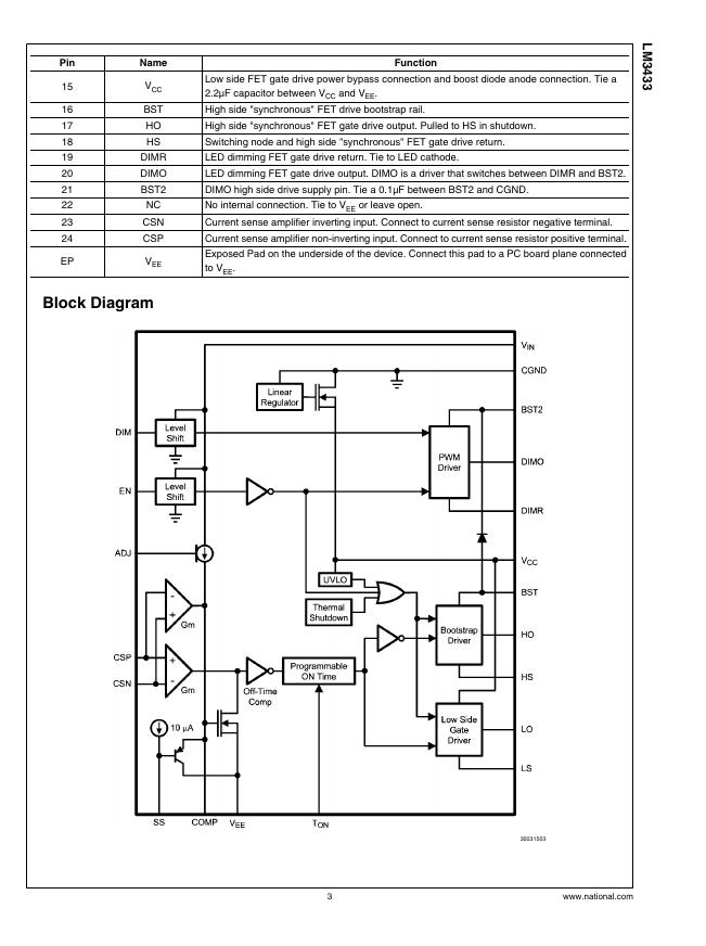 NATIONAL SEMICONDUCTOR LM3433 Common Anode Capable High Brightness LED Driver with High Frequency Dimming 数据手册.pdf
