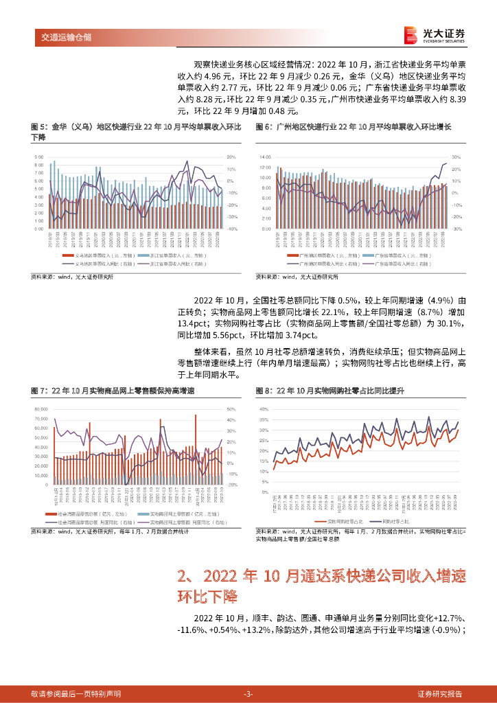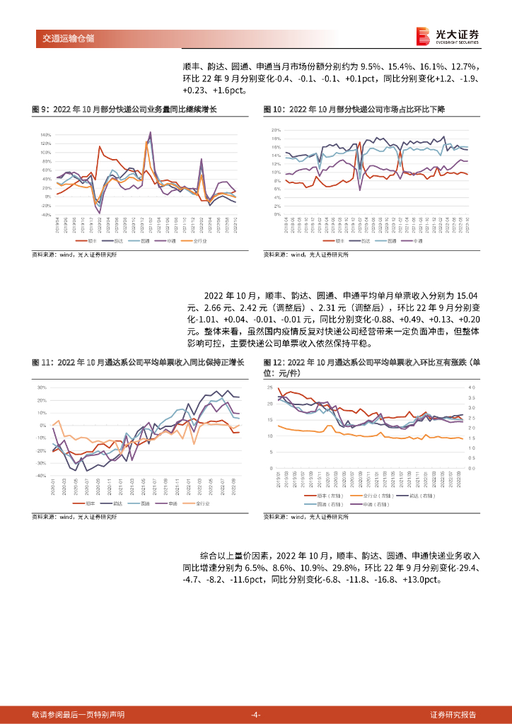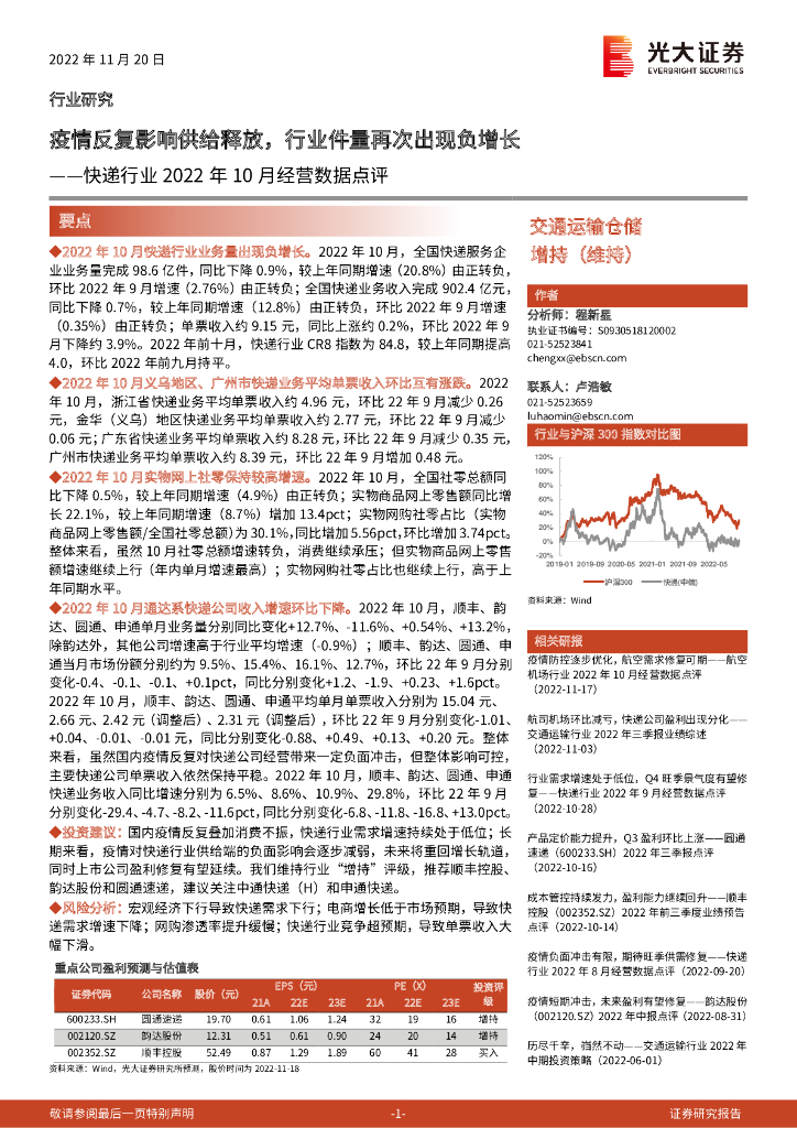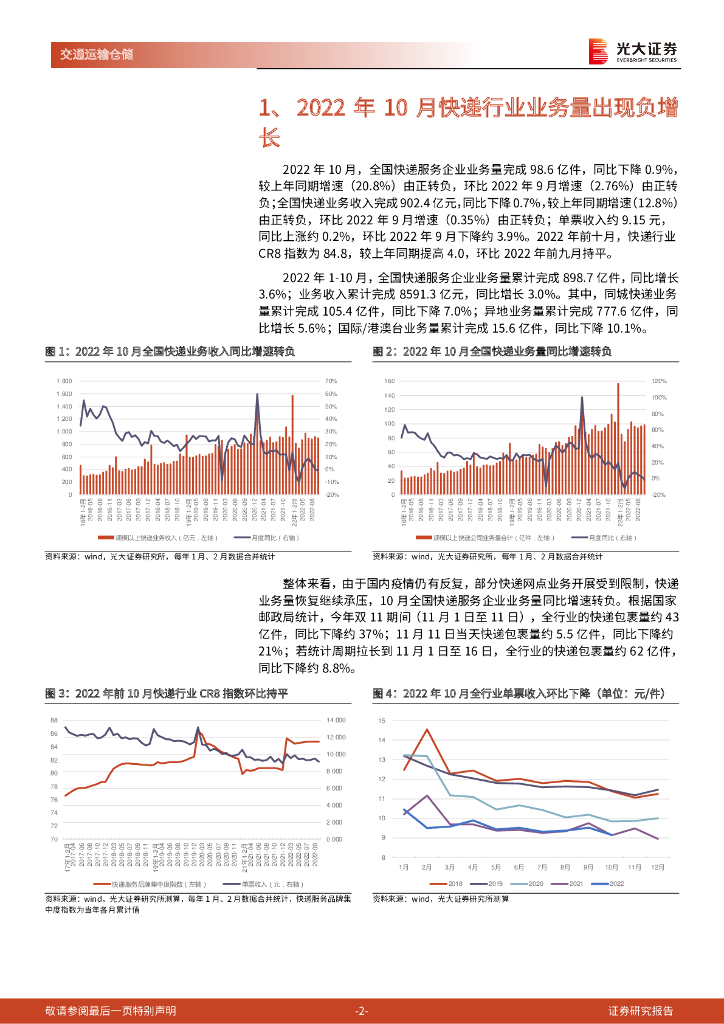 光大证券:快递行业2022年10月经营数据点评:疫情反复影响供给释放,行业件量再次出现负增长.pdf