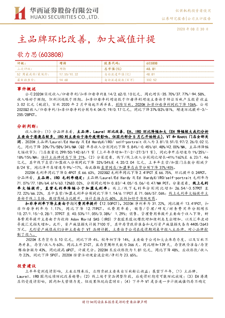 华西证券:歌力思(603808)-主品牌环比改善,加大减值计提.pdf