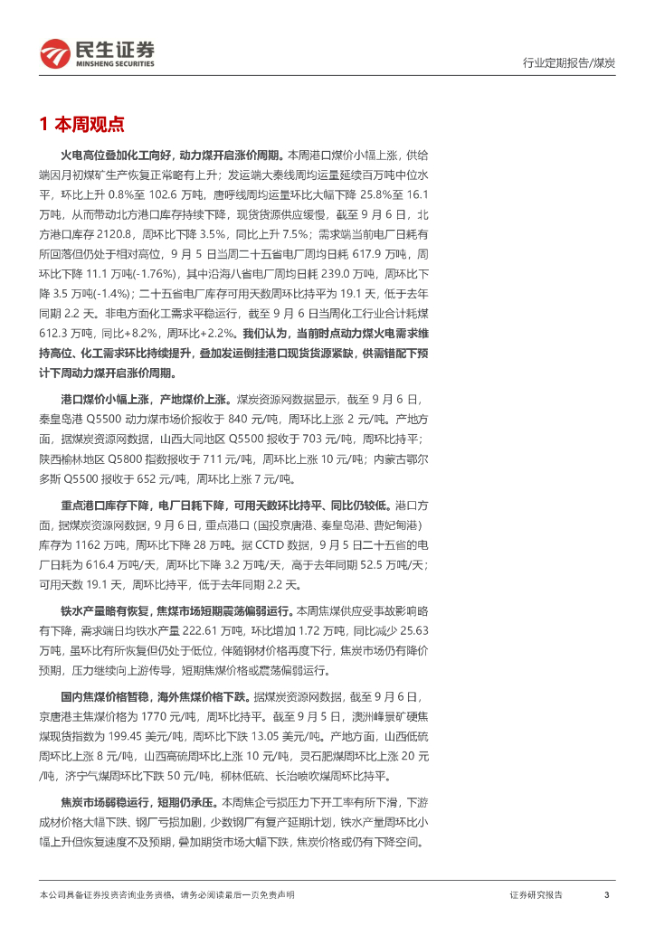 民生证券:煤炭周报:火电高位叠加化工向好,动力煤开启涨价周期.pdf