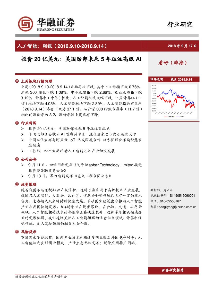 华融证券:人工智能周报:投资20亿美元:美国防部未来5年压注高级AI.pdf
